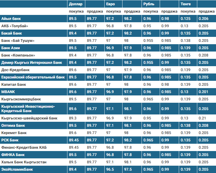Курс доллара в коммерческих банках Кыргызстана на 19 марта