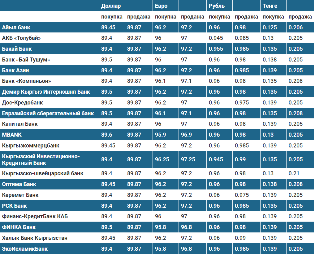 Курс доллара в коммерческих банках Кыргызстана на 29 марта