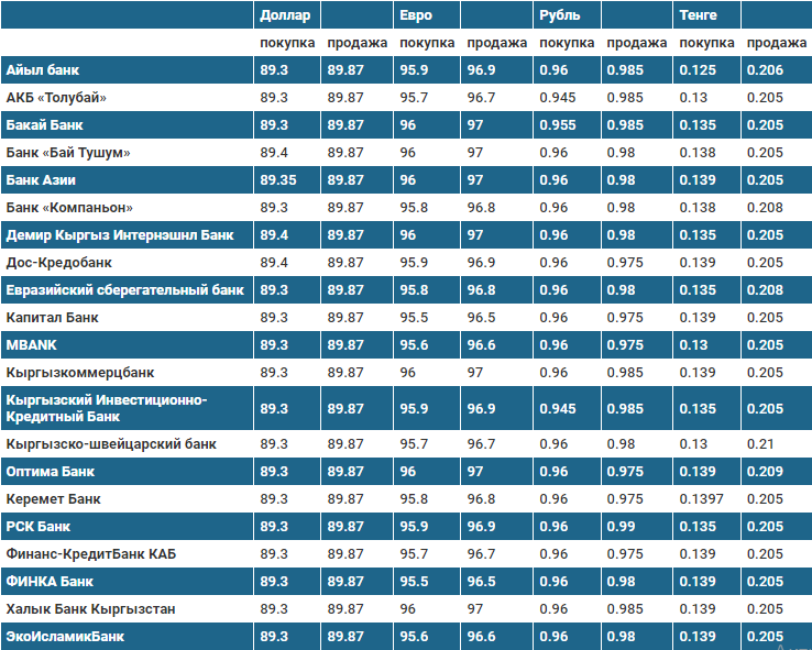 Курс доллара в коммерческих банках Кыргызстана на 3 апреля