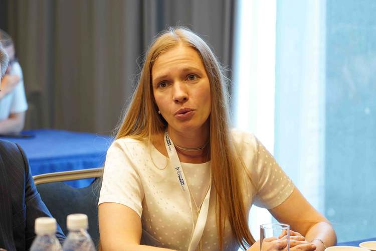 Президент «Кумтор Голд Компани» Алмазбек Барыктабасов и директор по ресурсам узбекского АО «Навоийский горно-металлургический комбинат» Любовь Егорова обсудили вопросы возможного сотрудничества на полях X горно-геологического форума «MINEX Центральная Азия — 2024».