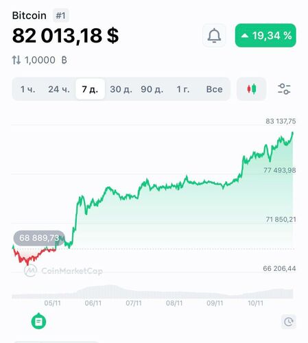 Отметим, эта цифровая валюта растет в цене со дня президентских выборов в США. До 5 ноября криптовалюта торговалась примерно на уровне $68 тысяч. В день выборов биткоин подскочил до $75 тысяч.