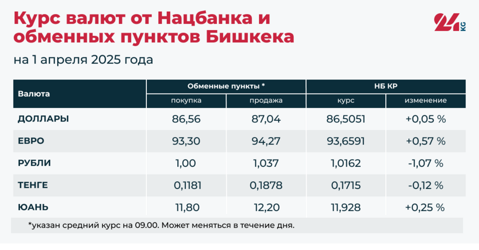 - Официальный курс Национального банка КР — 86,5051 сома (рост — 0,12 процента).