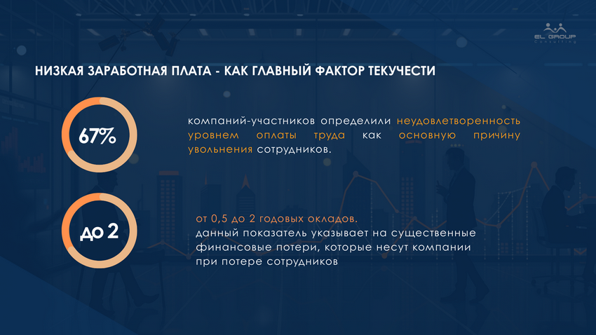 Несмотря на рост доходов, 67 процентов опрошенных компаний считают неудовлетворенность уровнем оплаты труда основной причиной увольнения сотрудников. Этот фактор создает серьезную проблему для бизнеса, поскольку, как показывает исследование, потеря одного сотрудника может стоить компании от половины до двух его годовых окладов. В то же время большинство компаний оптимистично настроены: 73 процента из них уже увеличили зарплаты с апреля 2024 по апрель 2025 года. При этом ни одна из компаний-участников исследования не планирует ее сокращать.Большинство компаний-участников прогнозируют инфляцию на уровне 7 процентов в 2025 году и 8,4 процента 2026 году.