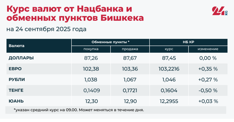• Официальный курс НБ КР: 87,45 сома (без изменений).