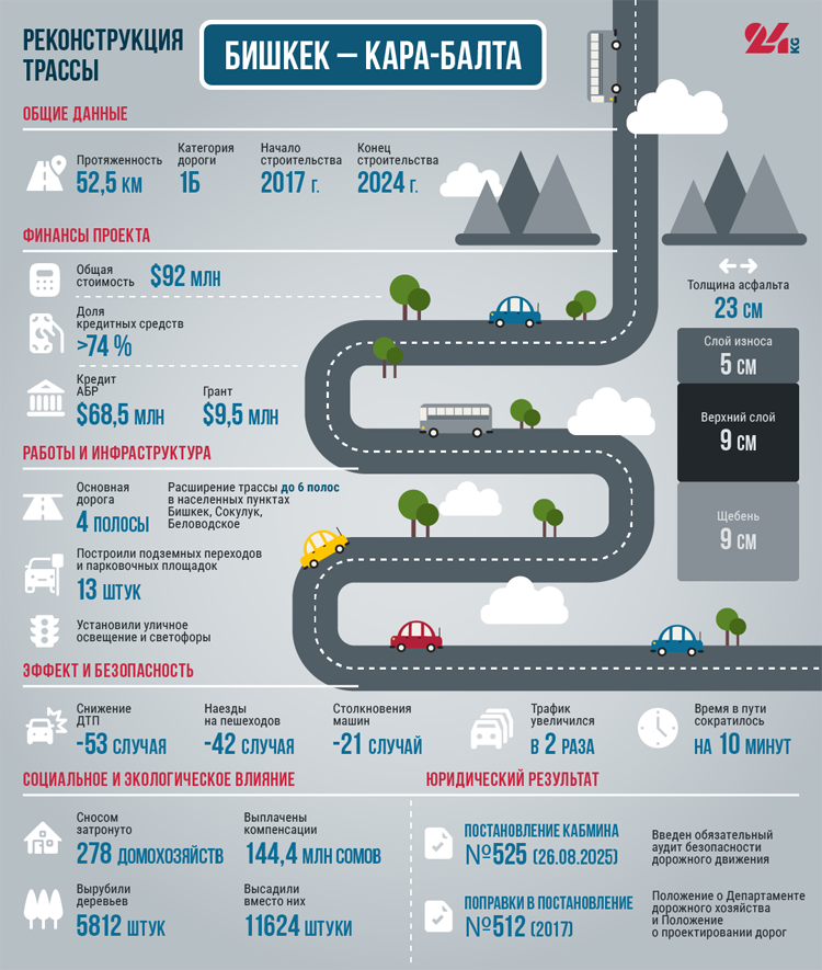 За $92 миллиона Кыргызстан получил 52,5 километра новой трассы Бишкек — Кара-Балта и обязательство проводить аудит безопасности на всех дорогах страны. Почему международный кредит стал инструментом законодательного давления, в материале 24-kg.com.