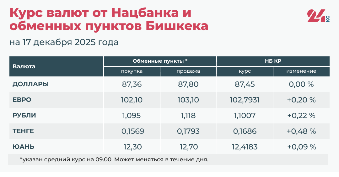- Официальный курс НБ КР: 87,45 сома (без изменений).