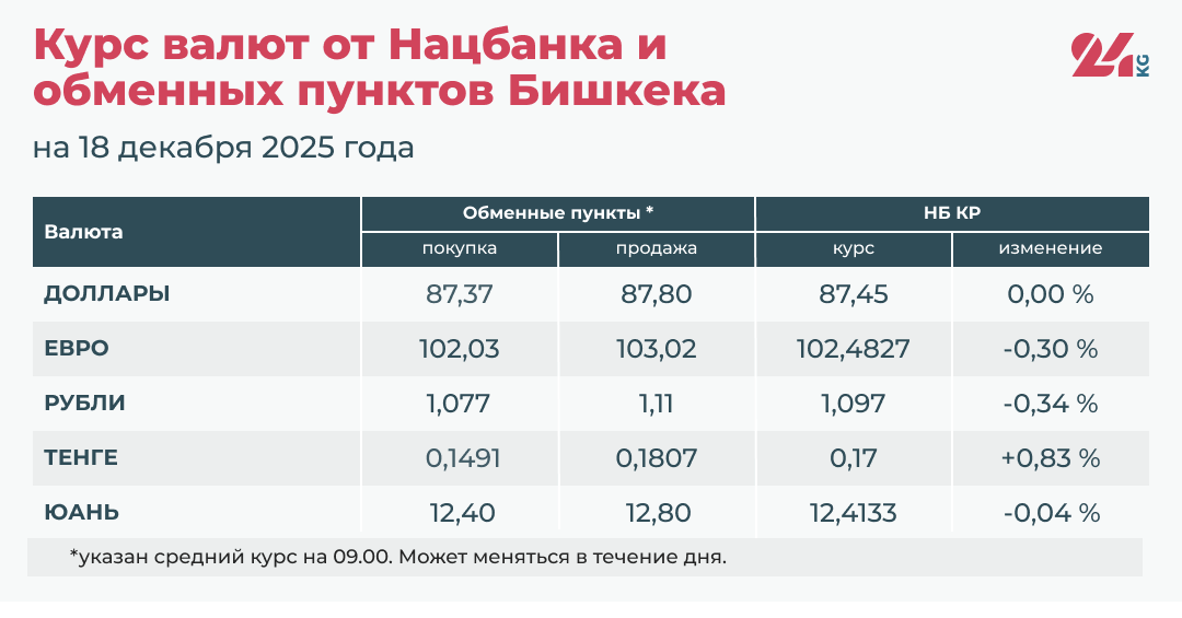 - Официальный курс НБ КР: 87,45 сома (без изменений).