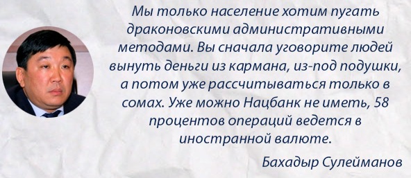 «Сначала заставьте людей вынуть деньги из кармана и из-под подушки», - заявил сегодня на заседании Жогорку Кенеша депутат Бахадыр Сулейманов.