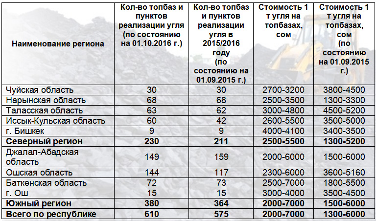 Уголь на топливных базах можно купить от 2 до 7 тысяч сомов за тонну. Для удобства граждан по республике открыто 610 топливных баз.