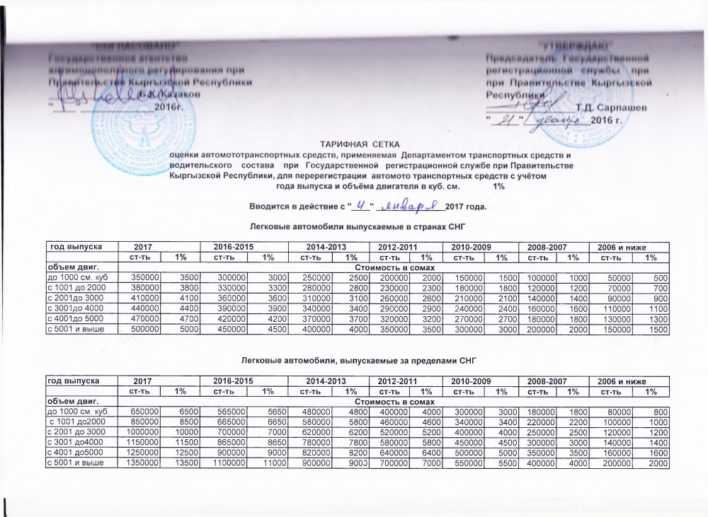 Стоимость регистрации вырастет на пять процентов. При этом в ГРС отмечают, что цены на регистрацию автомобилей будут только расти. Таково требование Евразийского экономического союза. В будущем ставки на регистрацию авто в Кыргызстане и других странах ЕАЭС должны уравняться.