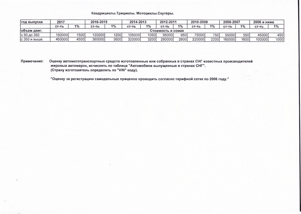 Сегодня вступает в силу распоряжение «Об утверждении тарифной сетки оценки автомототранспортных средств, применяемой при первичной регистрации и перерегистрации автомототранспортных средств на 2017 год». Об этом сообщила Государственная регистрационная служба.