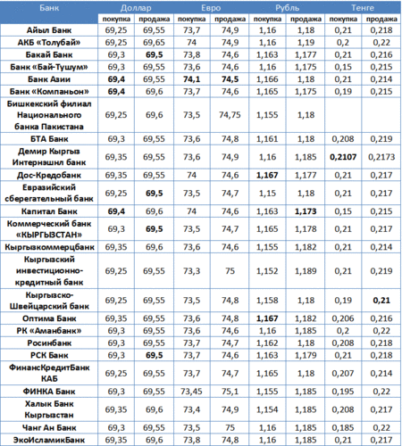Курсы указаны для наличного обмена валют. Данные получены с сайтов коммерческих банков. В случае возникновения вопросов по представленным данным следует обращаться непосредственно в коммерческие банки.