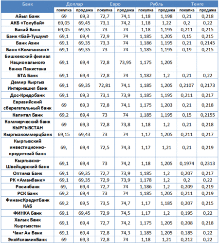 Курс доллара в коммерческих банках Кыргызстана на 14 февраля