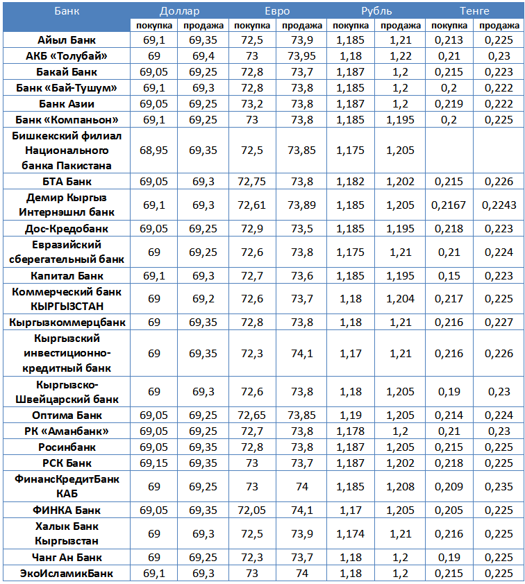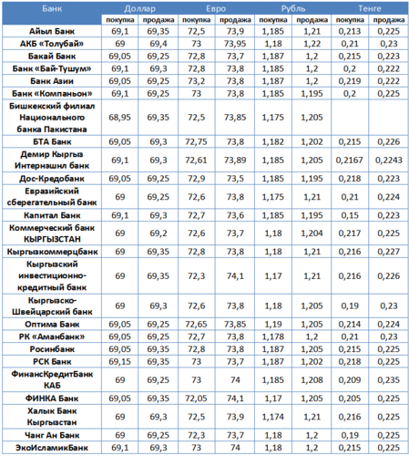 Курс доллара в коммерческих банках Кыргызстана на 28 февраля