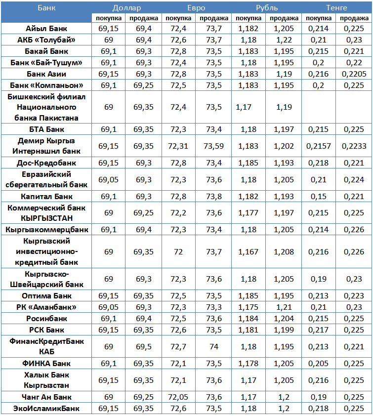 Курс доллара в коммерческих банках Кыргызстана на 2 марта