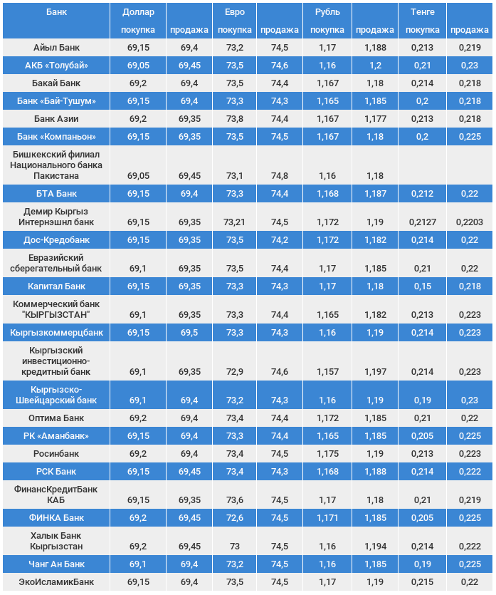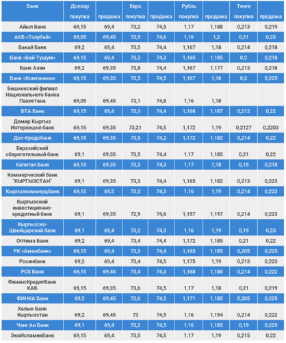 Курс доллара в коммерческих банках Кыргызстана на 14 марта