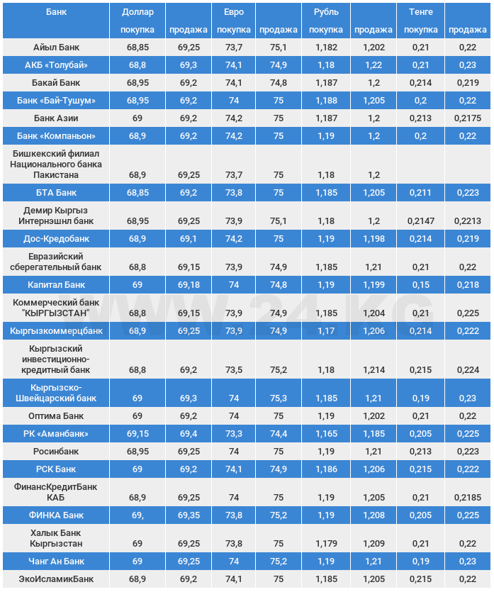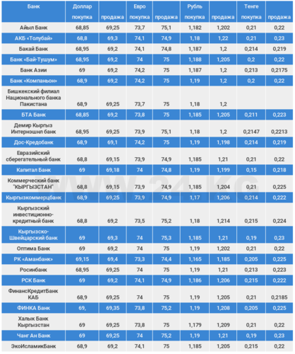 Курс доллара в коммерческих банках Кыргызстана на 23 марта