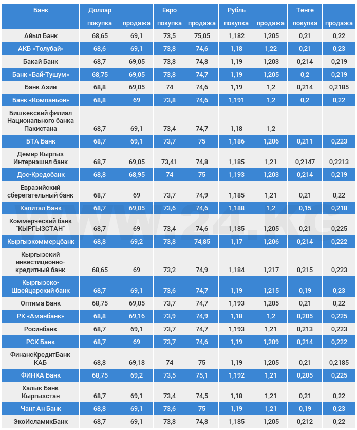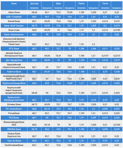 Курс доллара в коммерческих банках Кыргызстана на 24 марта