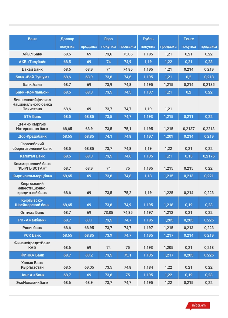Курс доллара в коммерческих банках Кыргызстана на 25 марта