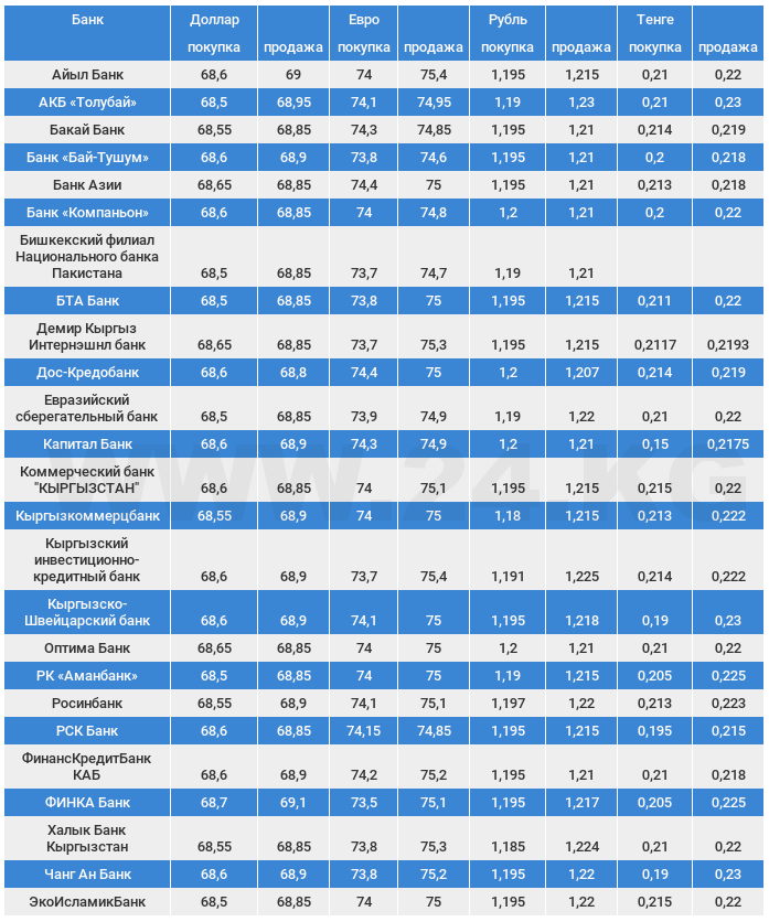 Курс доллара в коммерческих банках Кыргызстана на 27 марта