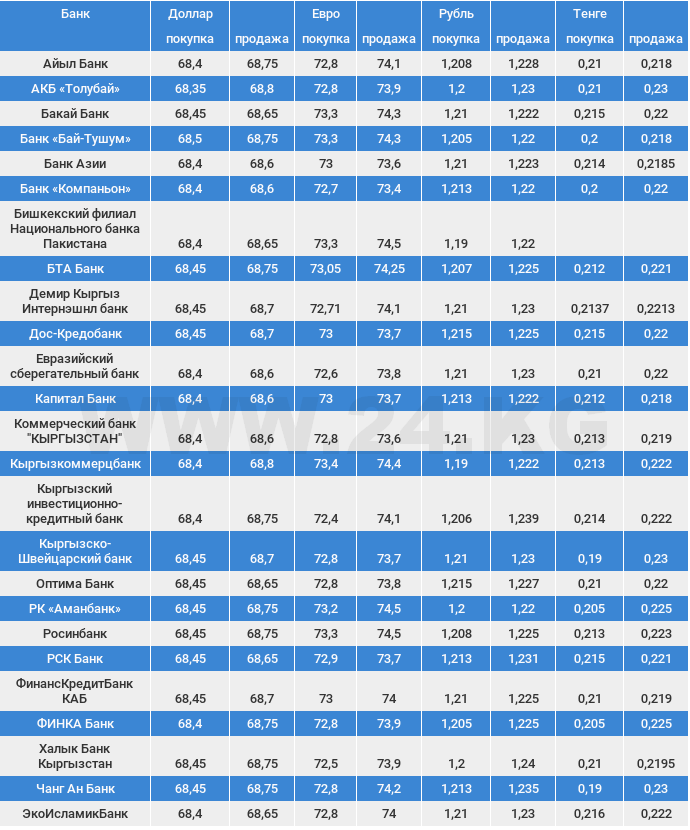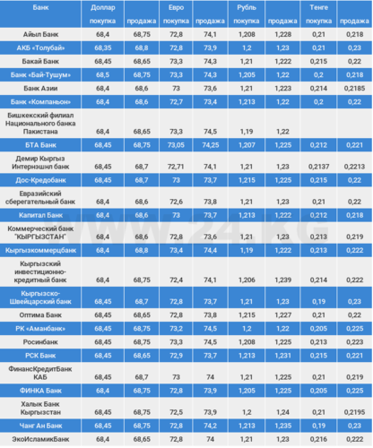 Курс доллара в коммерческих банках Кыргызстана на 31 марта