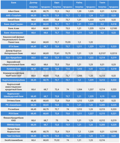 Курс доллара в коммерческих банках Кыргызстана на 3 апреля