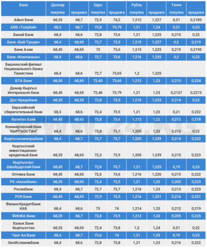 Курс доллара в коммерческих банках Кыргызстана на 4 апреля