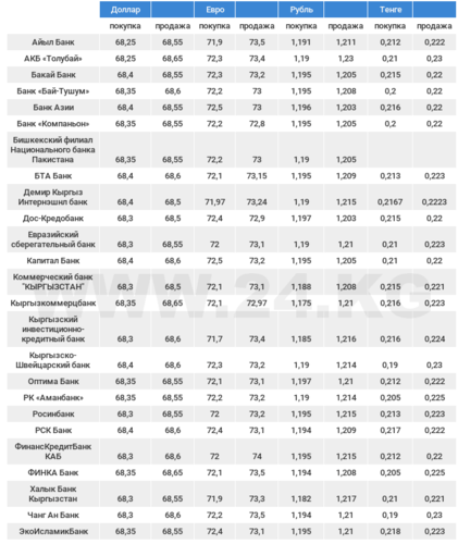 Курс доллара в коммерческих банках Кыргызстана на 12 апреля