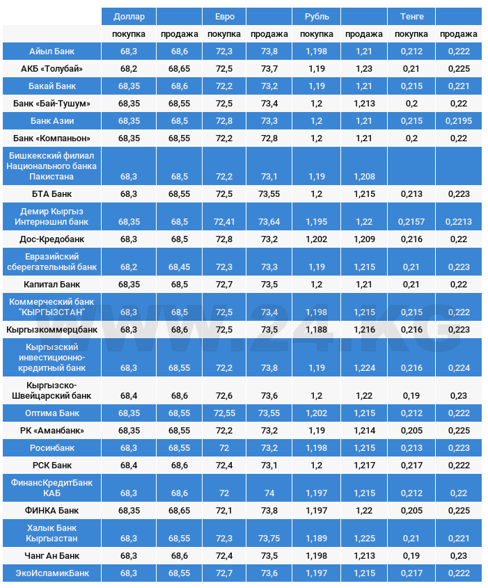 Курс доллара в коммерческих банках Кыргызстана на 13 апреля