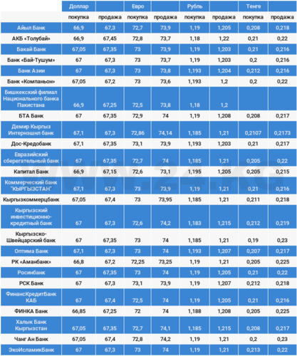 Курс доллара в коммерческих банках Кыргызстана на 26 апреля