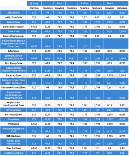 Курс доллара в коммерческих банках Кыргызстана на 15 мая