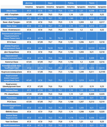 Курс доллара в коммерческих банках Кыргызстана на 17 мая