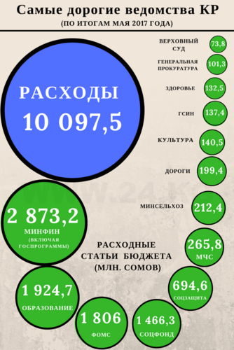 В мае расходы бюджета Кыргызстана составили 10 миллиардов 97,5 миллиона сомов. Такие данные привели в Министерстве финансов.