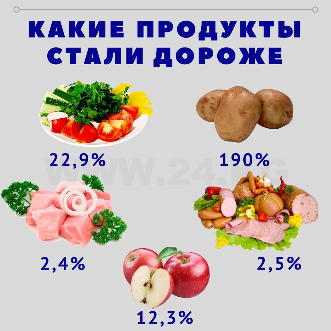 Повышение цен и тарифов с начала года наблюдалось на табачные изделия (14 процентов) и услуги (на 3 процента). Цены на непродовольственные товары снизились на 0,6 процента, алкогольные напитки — на 3,9 процента. Пищевые продукты подорожали на 4,6 процента.