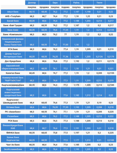 Курс доллара в коммерческих банках Кыргызстана на 15 июня