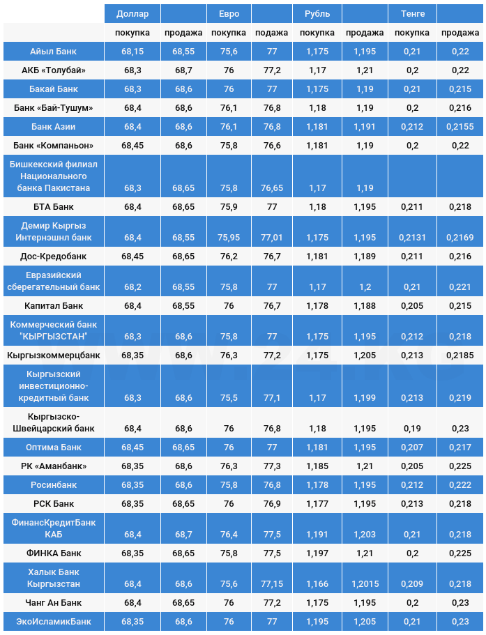 Курс доллара в коммерческих банках Кыргызстана на 16 июня