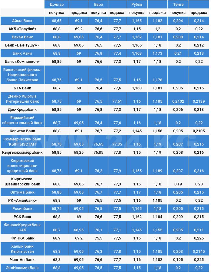 Курс доллара в коммерческих банках Кыргызстана на 27 июня