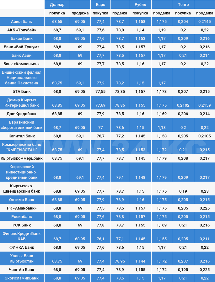 Курс доллара в коммерческих банках Кыргызстана на 28 июня