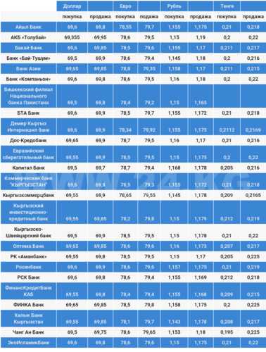 Курс доллара в коммерческих банках Кыргызстана на 6 июля