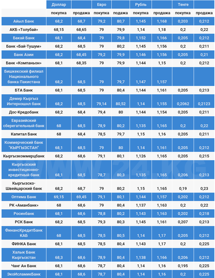 Курс доллара в коммерческих банках Кыргызстана на 24 июля