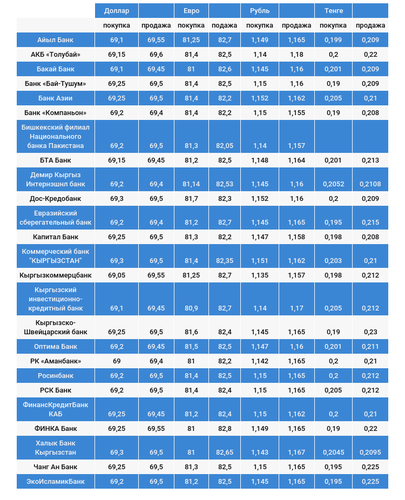 Курс доллара в коммерческих банках Кыргызстана на 8 августа