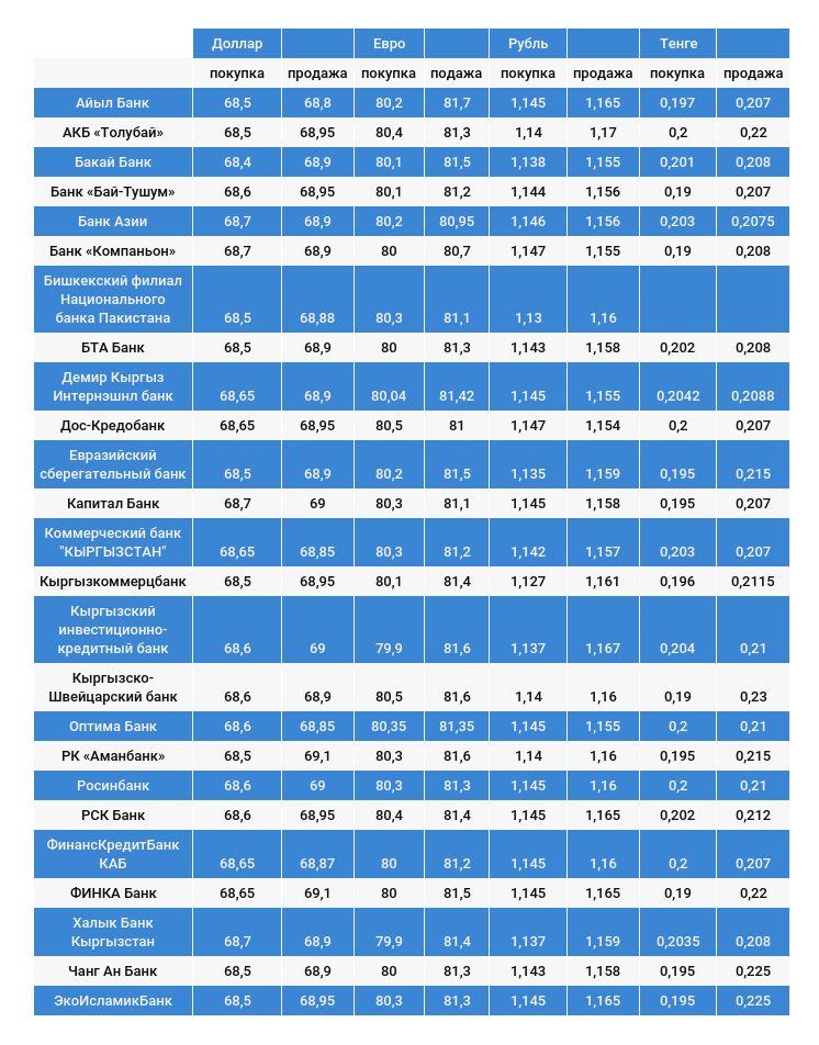 Курс доллара в коммерческих банках Кыргызстана на 16 августа