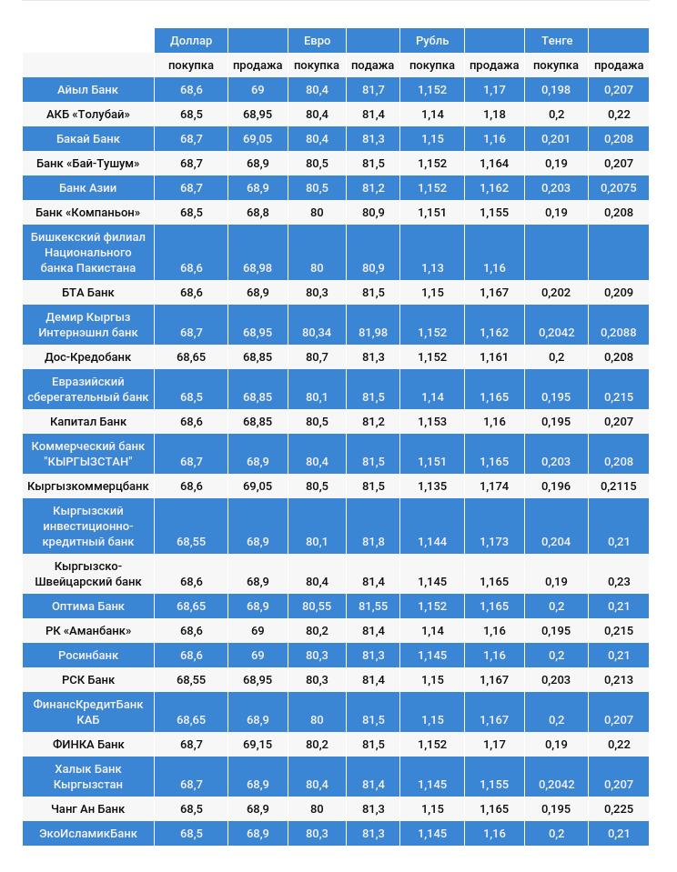 Курс доллара в коммерческих банках Кыргызстана на 17 августа