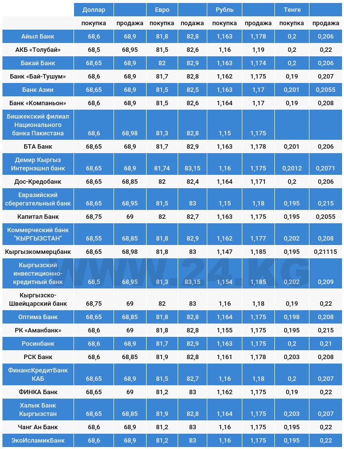 Курс доллара в коммерческих банках Кыргызстана на 30 августа