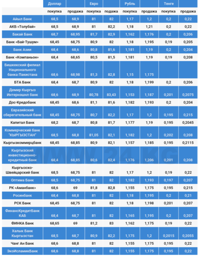 Курс доллара в коммерческих банках Кыргызстана на 4 сентября
