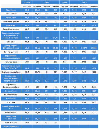 Курс доллара в коммерческих банках Кыргызстана на 6 сентября