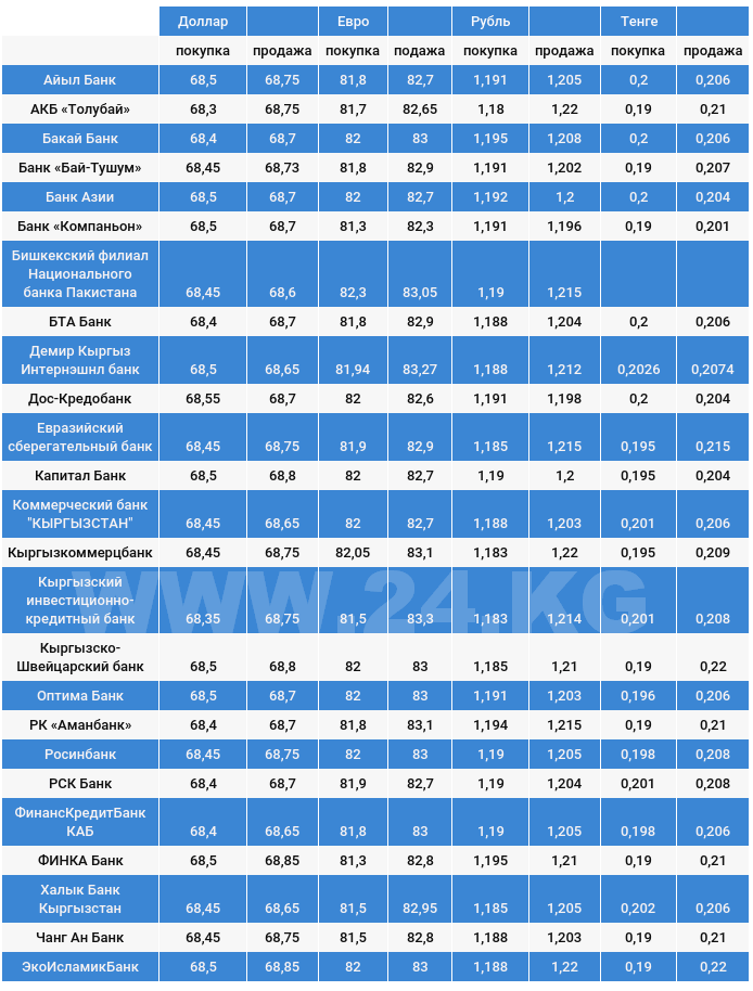 Курс доллара в коммерческих банках Кыргызстана на 11 сентября