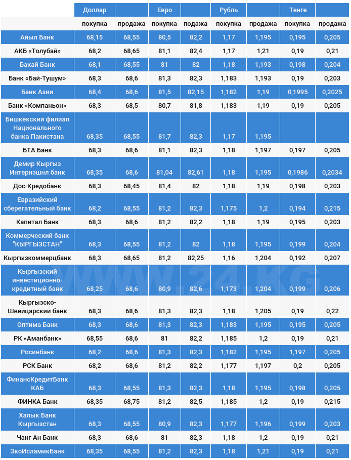 Курс доллара в коммерческих банках Кыргызстана на 18 сентября