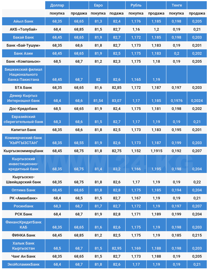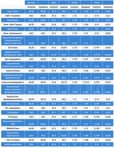 Курс доллара в коммерческих банках Кыргызстана на 20 сентября