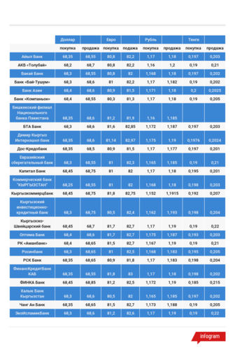 Курс доллара в коммерческих банках Кыргызстана на 21 сентября